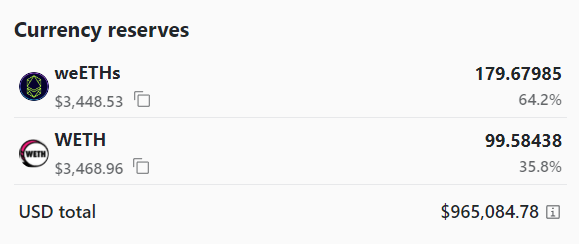 weETHs has a very small on-chain LP so the liquidations will be mainly executed through a native withdrawal function from the Liquid vault and use contract backing as an oracle. The withdrawal process takes up to 7 days, even if we estimate that wstETH reaches the high borrowing rate of 100%, there will be more than 35 days to liquidate the position before Fluid accrues bad debt. Together with the borrowing caps, the risks from this market to Fluid are very low.