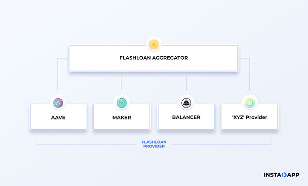 The first component in shifting and improving our flashloan services is to better connect the overall flashloan market and services. Instadapp has completed development of our upcoming Flashloan Aggregator. The Flashloan Aggregator will find and utilize the best rates for flashloans across a variety of protocols and allow us to provide our popular strategies and other complex functionality at competitive prices. The Flashloan Aggregator operates similarly to other aggregators you know like Paraswap or 1inch. The Flashloan Aggregator will utilize a variety of sources to route you accordingly for maximize efficiency. The Flashloan Aggregator is upgradable and can be configured to include additional flashloan sources as they become available.