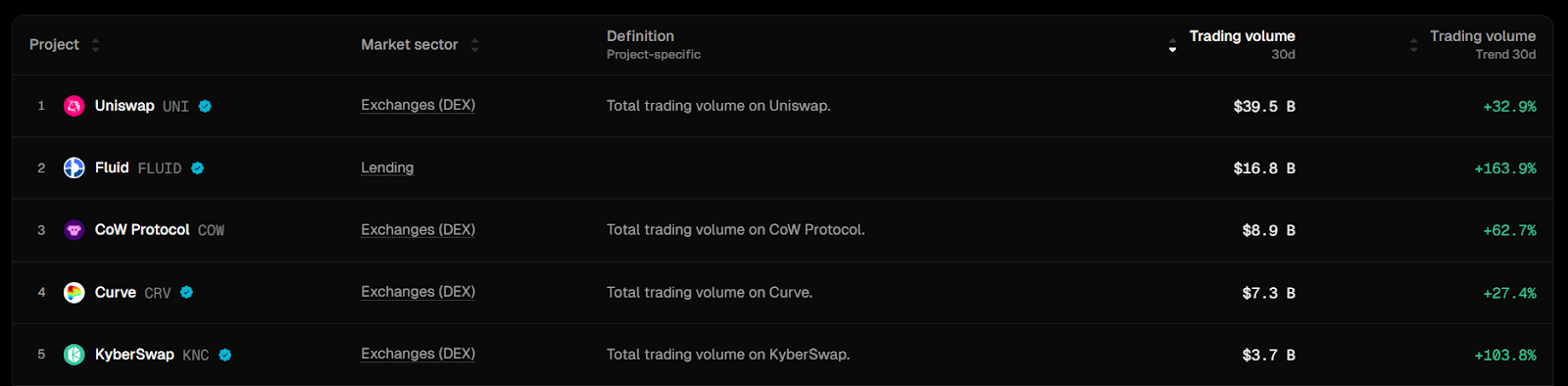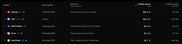- Fluid DEX is currently the second largest by trading volume and fees on Ethereum: