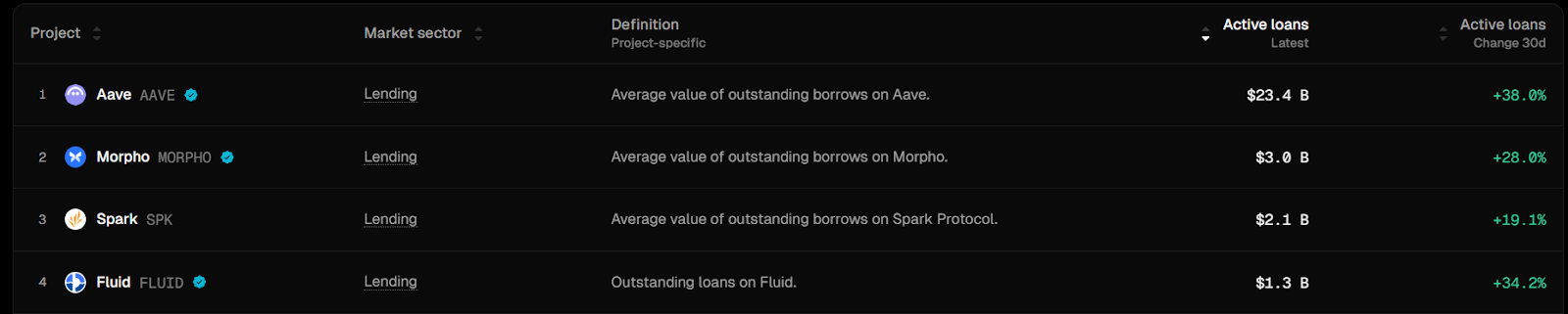 - Fluid Lending ranks among the top 4 lending markets on Ethereum by active loans: