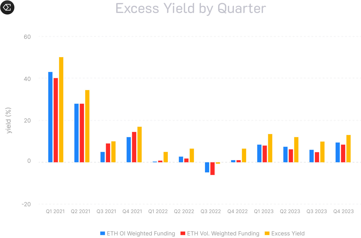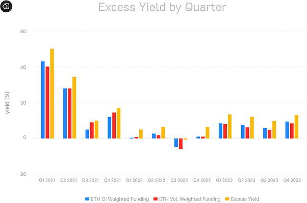 Ethereum funding rates have been positive throughout this bear market except for a short period of time during the PoW to PoS transition. Even on the days when the funding is negative, Ethena has a ~3.5% margin (staking yield) to offset the difference.
