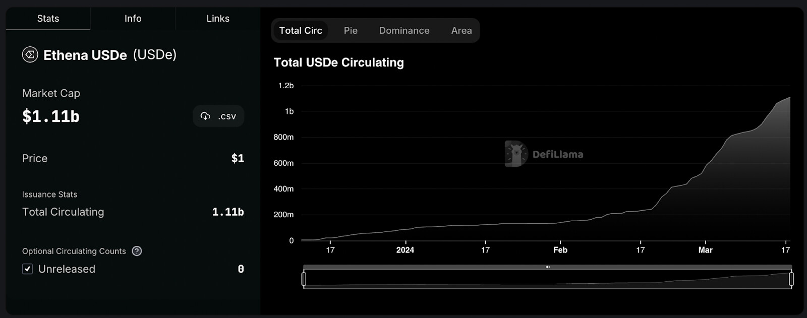 Basis trade (also known as Cash and carry) space is a fast-growing segment in DeFi. USDe supply has grown to $1.1B in just 1 month after public launch.
