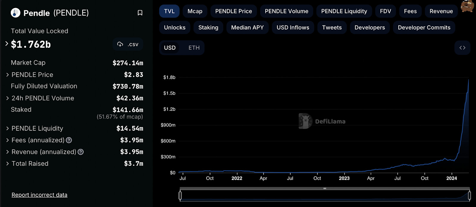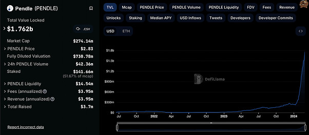 Pendle has grown from $200m to $1.8B TVL in 2 months: