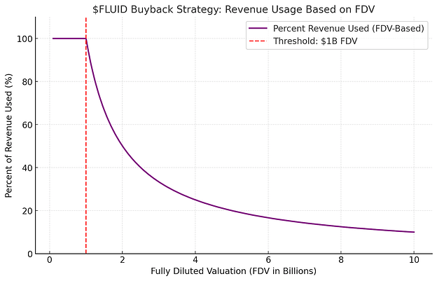 Follows the x * y = k model, where buybacks are dynamically adjusted based on $FLUID’s FDV.
