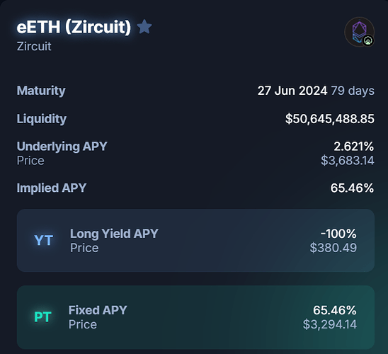 As we can see from the Pendle vaults, Zircuit weETH has more demand than vanilla weETH and YT (leverage) is more expansive by ~33%: